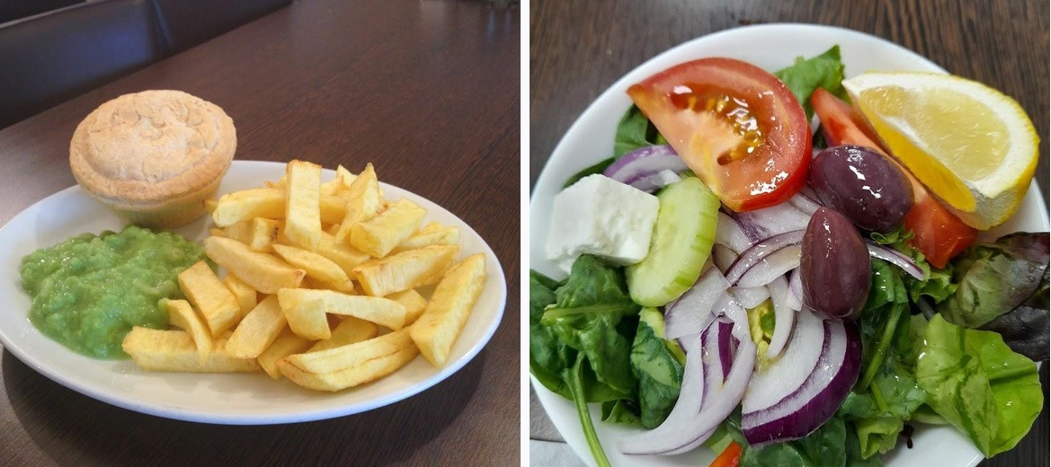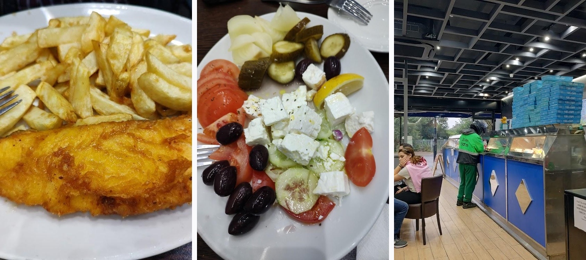 Mouthwatering, full menu Top ten 10/10 quality 9 type of fish dishes Pies & sausages, With or without sides Mushy peas, or Greek salad, Drinks, Great meal deals😍😋😋🥇🥇🥇🥇🥇